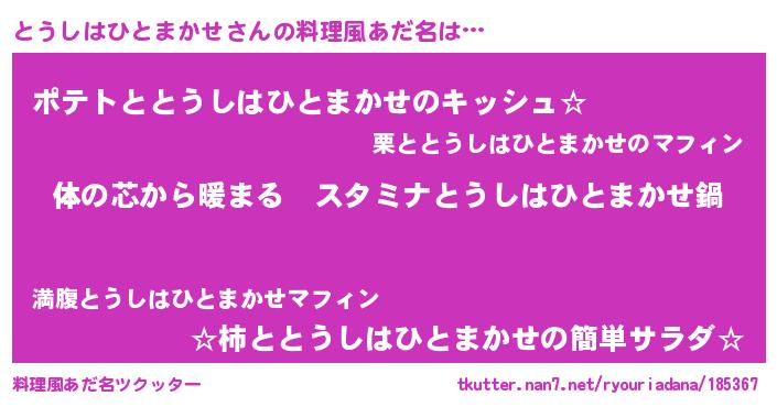 | 女子向けラノベタイトル風あだ名 | 『とうしはひとまかせの雑貨屋さん』 |