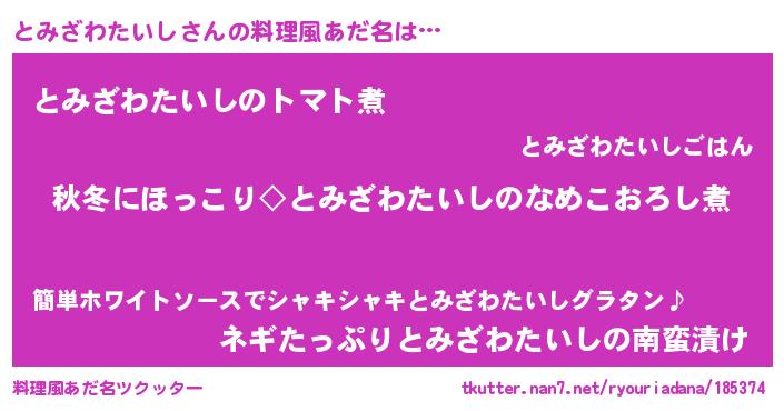 | 男性向けラノベタイトル風あだ名 | 『とみざわたいしに滅ぼされるだけの簡単なお仕事です』 |