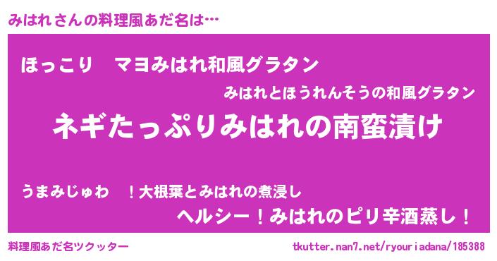 | 意味不明あだ名 | 『ペロリンみはれ』『自称みはれ』 |