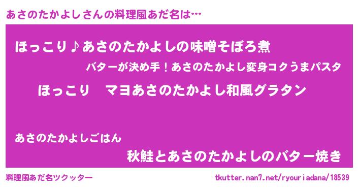 | ヘコむあだ名 | 『あさっふぃ~』『あさのたかよし(笑)』 |