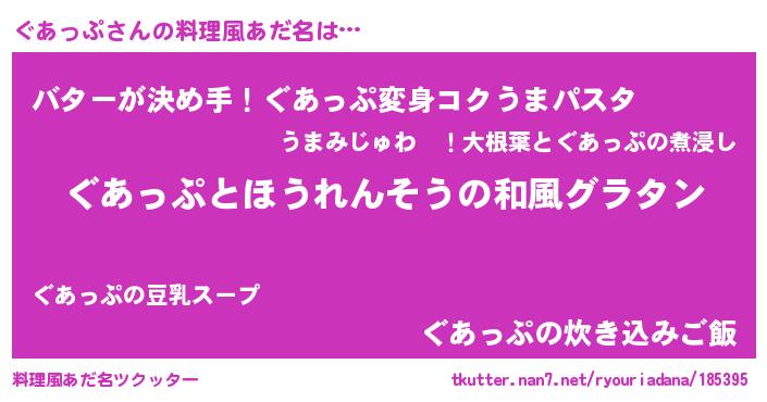 | ヘコむあだ名 | 『酢こんぶ』『ぐあぷりん』 |
