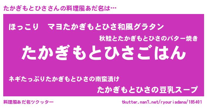 | 男性向けラノベタイトル風あだ名 | 『転生したらたかぎもとひさだった件』 |