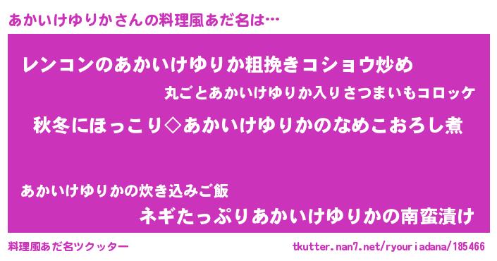 | ヘコむあだ名 | 『あかっふぃ~』『あかいけゆりか(遠い目)』 |