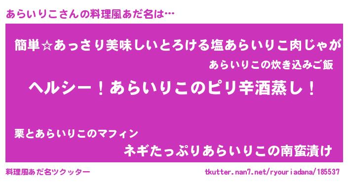 | ヘコむあだ名 | 『あらいりこ(震え声)』『あらにゅー』 |