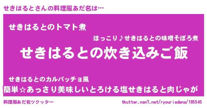 | 男性向けラノベタイトル風あだ名 | 『冴えないせきはるとの育てかた』 |
