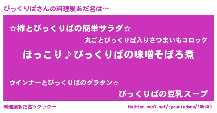 | 男性向けラノベタイトル風あだ名 | 『びっくりばの憂鬱』 |