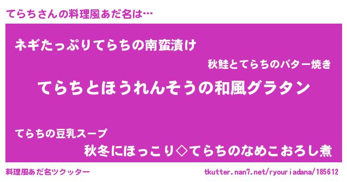 | 意味不明あだ名 | 『なめこ科てらち属』『ペロリンてらち』 |