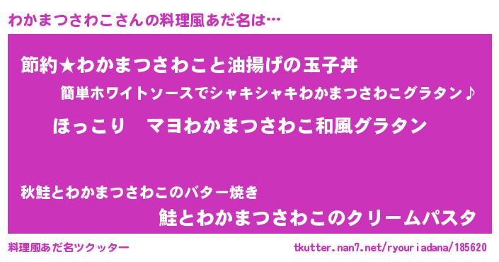 | 男性向けラノベタイトル風あだ名 | 『この素晴らしい世界にわかまつさわこを!』 |