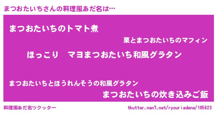 | 男性向けラノベタイトル風あだ名 | 『この素晴らしい世界にまつおたいちを!』 |