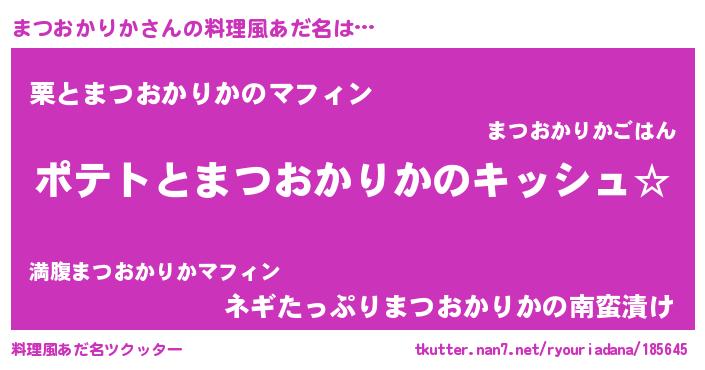 | 女子向けラノベタイトル風あだ名 | 『まつおかりかの卵を拾いまして』 |