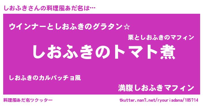 | ヒーロー風カッコイイあだ名 | 『正義の使者しおふき』『ネオシオフキ』 |