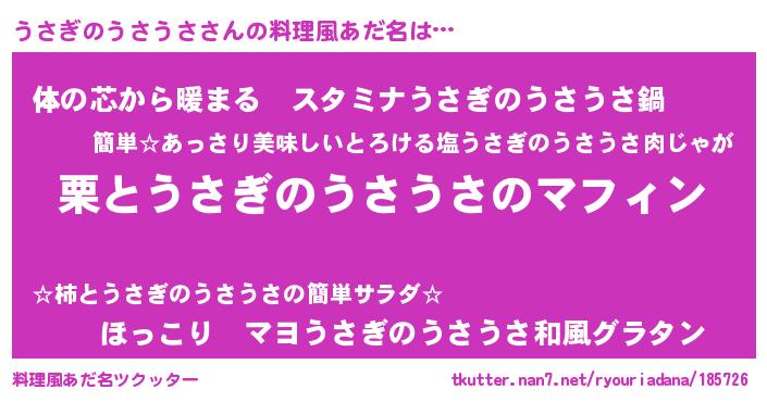| ファンタジー風あだ名 | 『エターナルウサギノウサウサー』 |