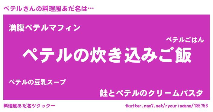 | 意味不明あだ名 | 『永久保存ペテル』『ニラ科ペテル属』 |