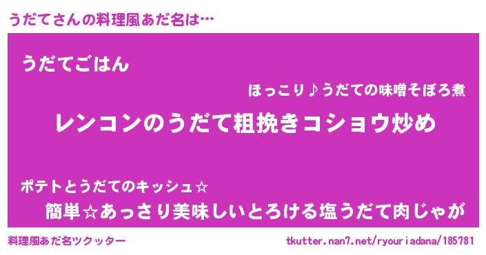 | 意味不明あだ名 | 『自称うだて』『たけのこ科うだて属』 |