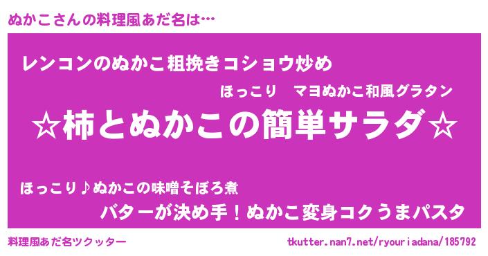 | ヒーロー風カッコイイあだ名 | 『超時空戦士ヌカコ』『愛の使者ぬかこ』 |