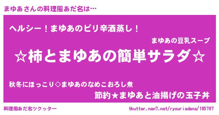 | 意味不明あだ名 | 『自称まゆあ』『ペロリンまゆあ』 |
