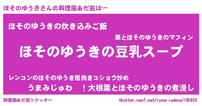 | ポケモン風あだ名 | 『ヒホソノユウキ』『メロホッソ』 |