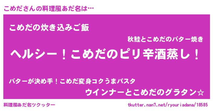 | 男性向けラノベタイトル風あだ名 | 『Re:こめだから始める異世界生活』 |
