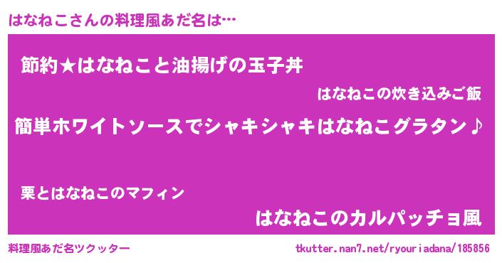 | 男性向けラノベタイトル風あだ名 | 『はなねこの嫁は女の子じゃないと思った?』 |