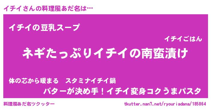 | ヒーロー風カッコイイあだ名 | 『スーパーイチイ』『魔戒騎士イチ』 |