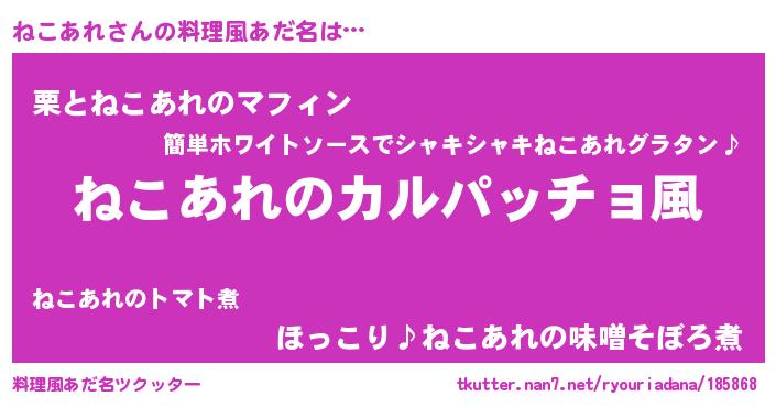 | 意味不明あだ名 | 『住所不定無職ねこあれ(2歳)』 |