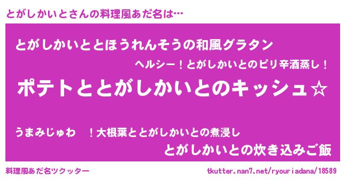 | ヘコむあだ名 | 『とがお』『レバニラ』『とがもー』 |