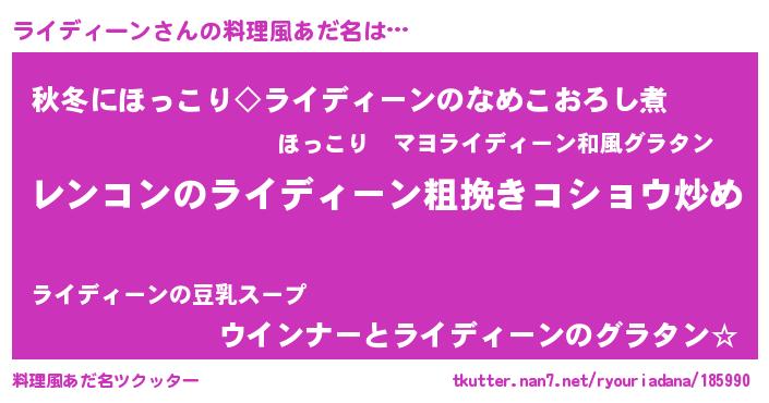 | 恥ずかしいあだ名 | 『ライディーンデラックス』『ライっちょ』 |