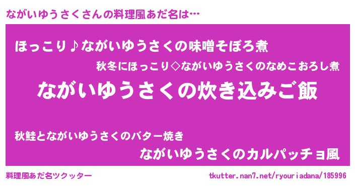 | 男性向けラノベタイトル風あだ名 | 『うちのながいゆうさくが世界を掌握している!』 |
