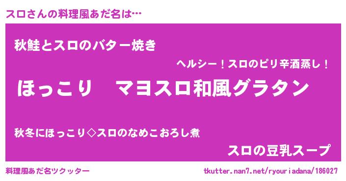 | 男性向けラノベタイトル風あだ名 | 『この素晴らしい世界にスロを!』 |