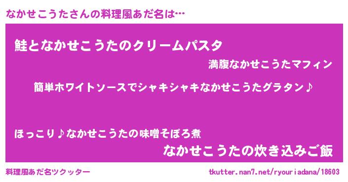 | 男性向けラノベタイトル風あだ名 | 『なかせこうたの嫁は女の子じゃないと思った?』 |