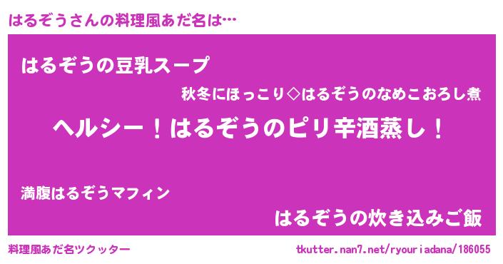 | 男性向けラノベタイトル風あだ名 | 『Re:はるぞうから始める異世界生活』 |