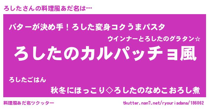 | ヘコむあだ名 | 『牛乳』『ろしふぇ~』『ろしお』 |