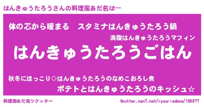 | 肩書あだ名 | 『はんきゅうたろう大将』 |