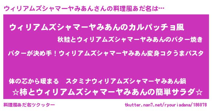 | ヘコむあだ名 | 『ウィリアムズシャマーヤみあん(震え声)』 |