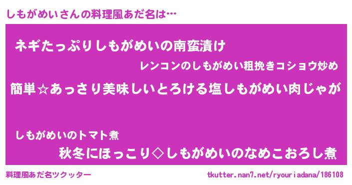 | 意味不明あだ名 | 『永久保存しもがめい』『自称しもがめい』 |