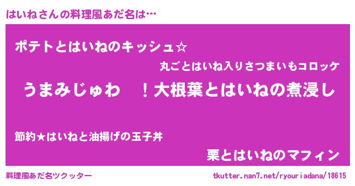 | 意味不明あだ名 | 『はいねフォーエバー』『ペロリンはいね』 |