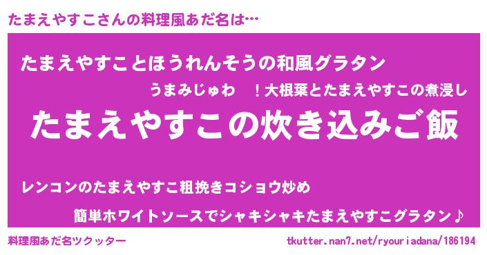 | 胡散臭い通販商品みたいなあだ名 | 『伝統あるサプリメント…その名も「たまえやすこ」』 |