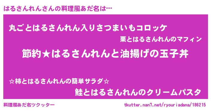 | 男性向けラノベタイトル風あだ名 | 『ハルサンレンアートオンライン』 |
