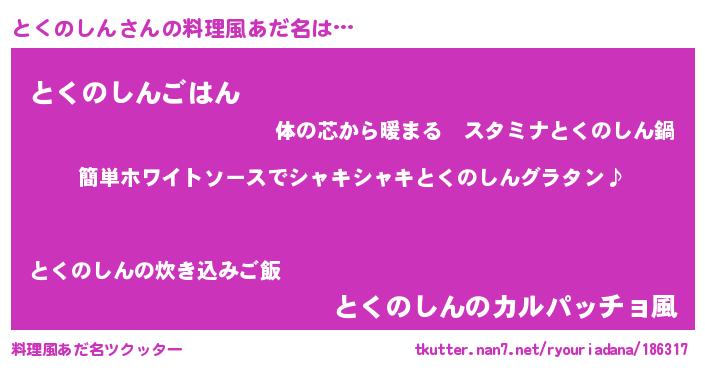 | ポケモン風あだ名 | 『ヒトクノシン』『トクキング』 |