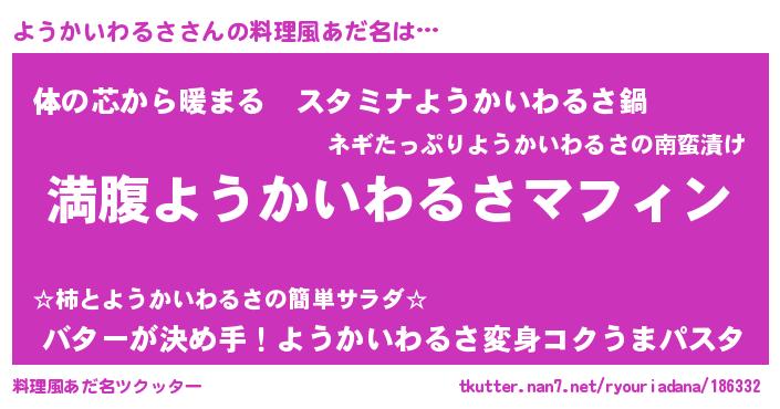 | 胡散臭い通販商品みたいなあだ名 | 『絶対に幸福をもたらす招き猫…その名も「ようかいわるさ」』 |
