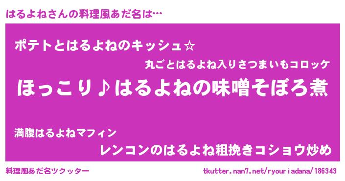 | ポケモン風あだ名 | 『ハルチュウ』『ヒハルヨネ』 |