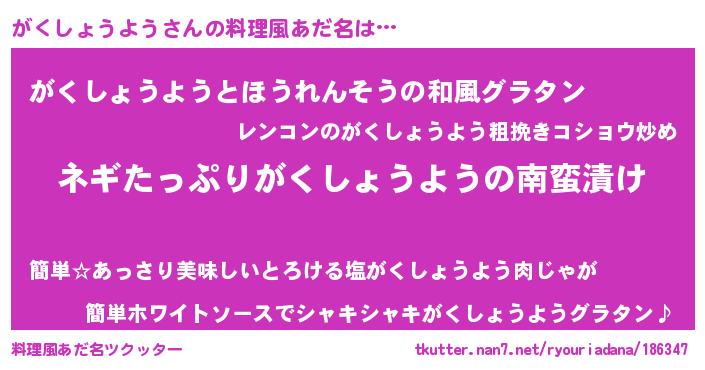 | ヘコむあだ名 | 『がくにゅー』『がくっ子』『牛乳』 |