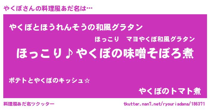 | ピコ太郎風あだ名 | 『ヤコ六郎』『ヤヤ太郎』『ヤク四郎』 |