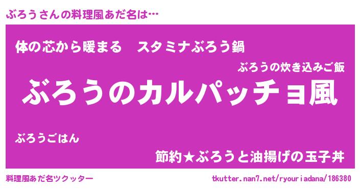 | 自動車の名前っぽいあだ名 | 『ブウディ』『ブクア』『ブロティマ』 |