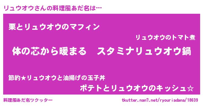 | 女子向けラノベタイトル風あだ名 | 『リュウオウの雑貨屋さん』 |