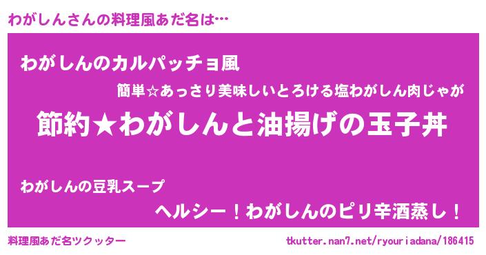 | ヘコむあだ名 | 『わがにゅー』『わがしん(笑)』 |