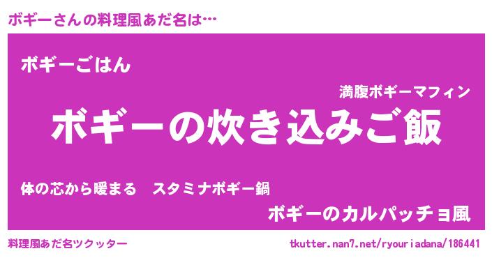 | 意味不明あだ名 | 『もやし科ボギー属』『永久保存ボギー』 |