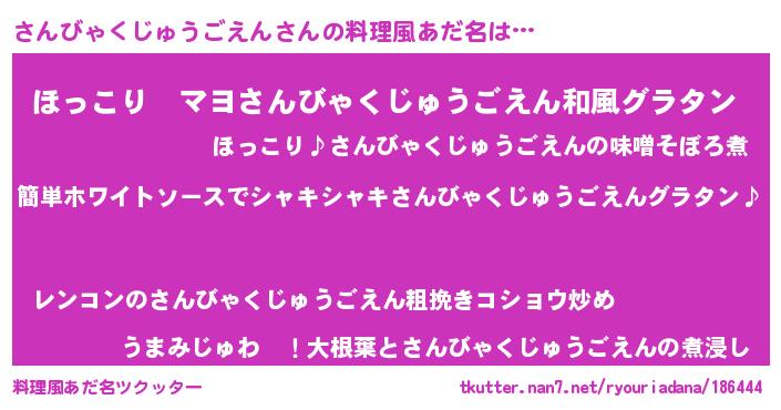 | ポケモン風あだ名 | 『ヒサンビャクジュウゴエン』『サーンイ』 |