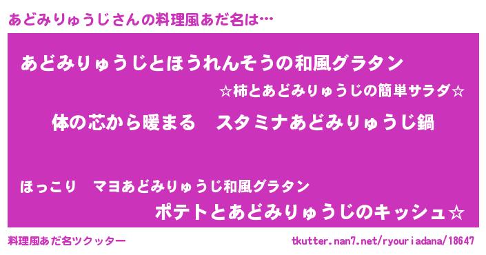 | 男性向けラノベタイトル風あだ名 | 『やはりあどみりゅうじの青春ラブコメはまちがっている 』 |