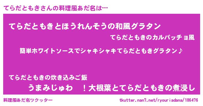 | ヘコむあだ名 | 『てらを』『レバニラ』 |